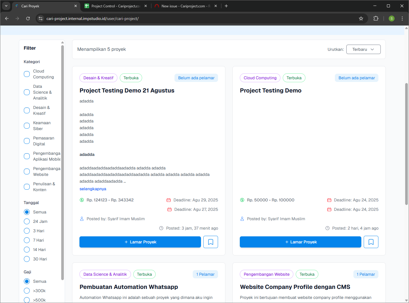 Memperbaiki bug pada card proyek, tampilan card akan memanjang terus jika di enter banyak