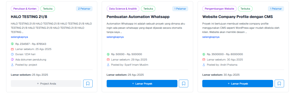 - Copied to Change Request #33508: [UI/UX] User - Cariproyek - Card Project added