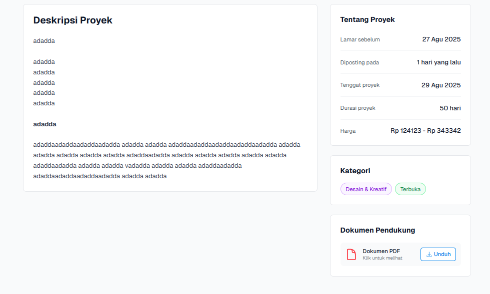 Sebagai User, saya ingin melihat detail proyek, sehingga mudah mengetahui tentang project.