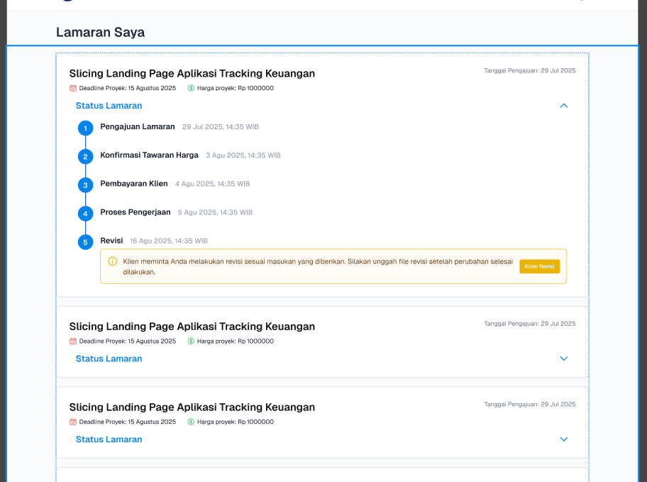 - Status Lamaran tampil secara bertahap, tidak langusng semuanya