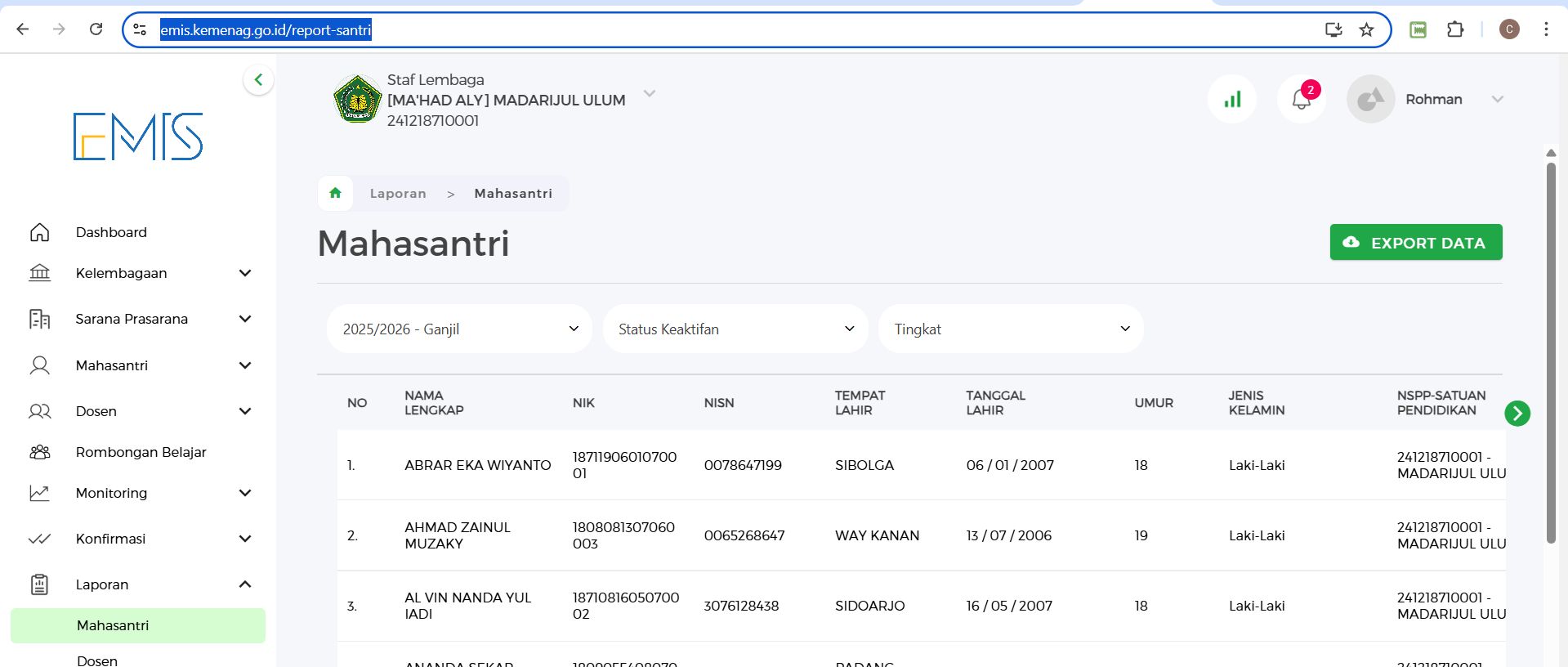 pak Dendy, minta tolong buatin API untuk SIKAP, buat get data mahasantri;