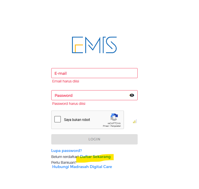 Mohon bantuannya lembaga tidak bisa Membuat akun EMIS karena