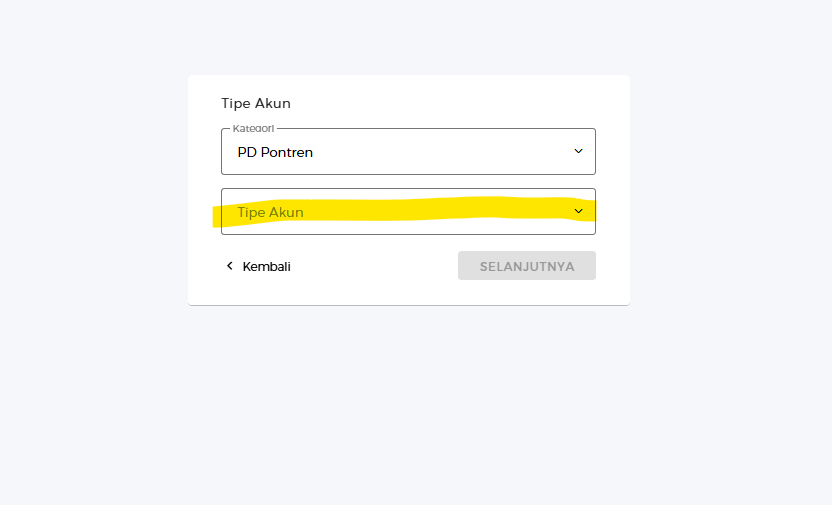 tipe akun lembaga tidak muncul ketika mau daftar akun EMIS