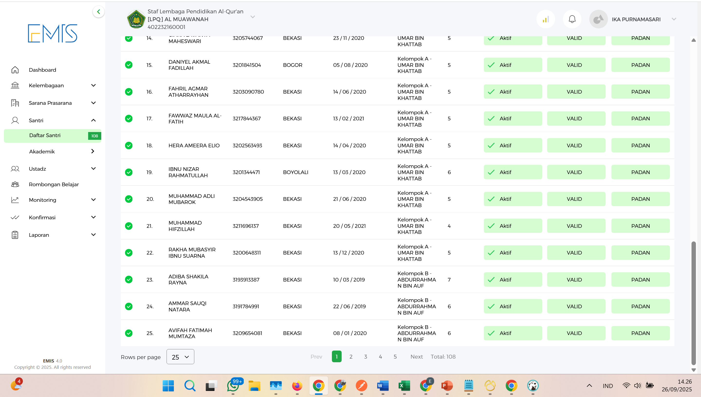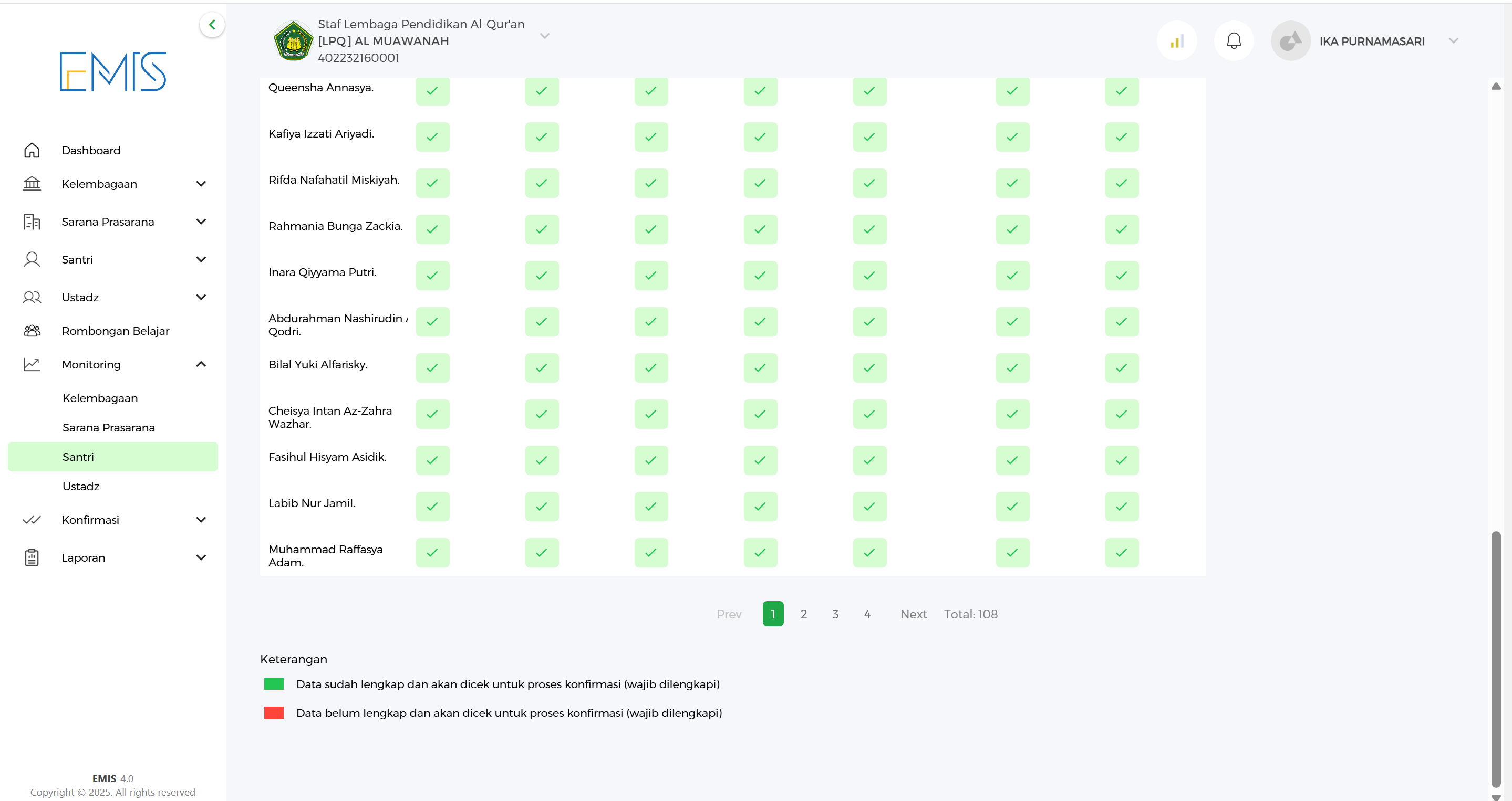 Mohon di periksa dari sisi query dalam aplikasi untuk data santri nya