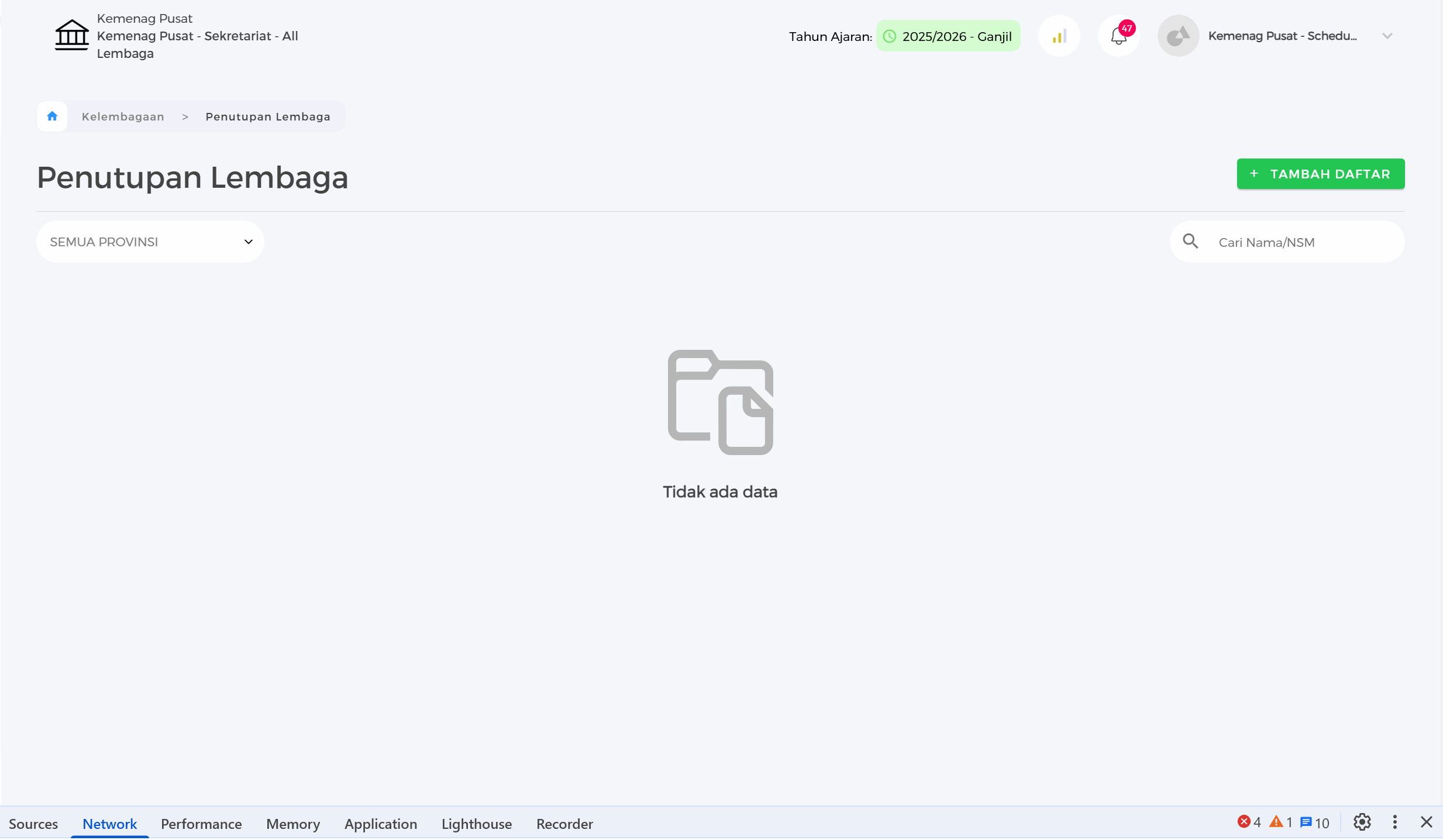 openList Daftar Lembaga yang sudah di tutup hilang